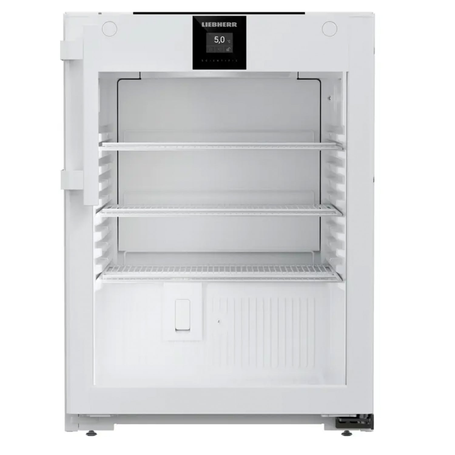 Przezroczyste drzwi izolacyjne umożliwiają szybką, wizualną kontrolę zapasów bez konieczności otwierania drzwi, co nie przerywa obiegu chłodniczego, zwiększając efektywność energetyczną i stabilność temperatury. Zintegrowana kolumna oświetlenia LED zapewnia równomierne doświetlenie wnętrza. Wyposażenie w elektroniczny zamek drzwiowy z ochroną kodem PIN oraz antybakteryjną klamkę zgodną z ISO 22196:2011 zwiększa higienę i pozwala na kontrolę dostępu – kluczowe czynniki dla bezpieczeństwa pacjentów. Integracja z siecią przez WLAN/LAN w systemie Liebherr SmartMonitoring umożliwia ciągły, cyfrowy nadzór nad temperaturą i jej rejestrację – istotny wkład w spełnianie wymogów dokumentacyjnych oraz optymalizację pracy placówki.