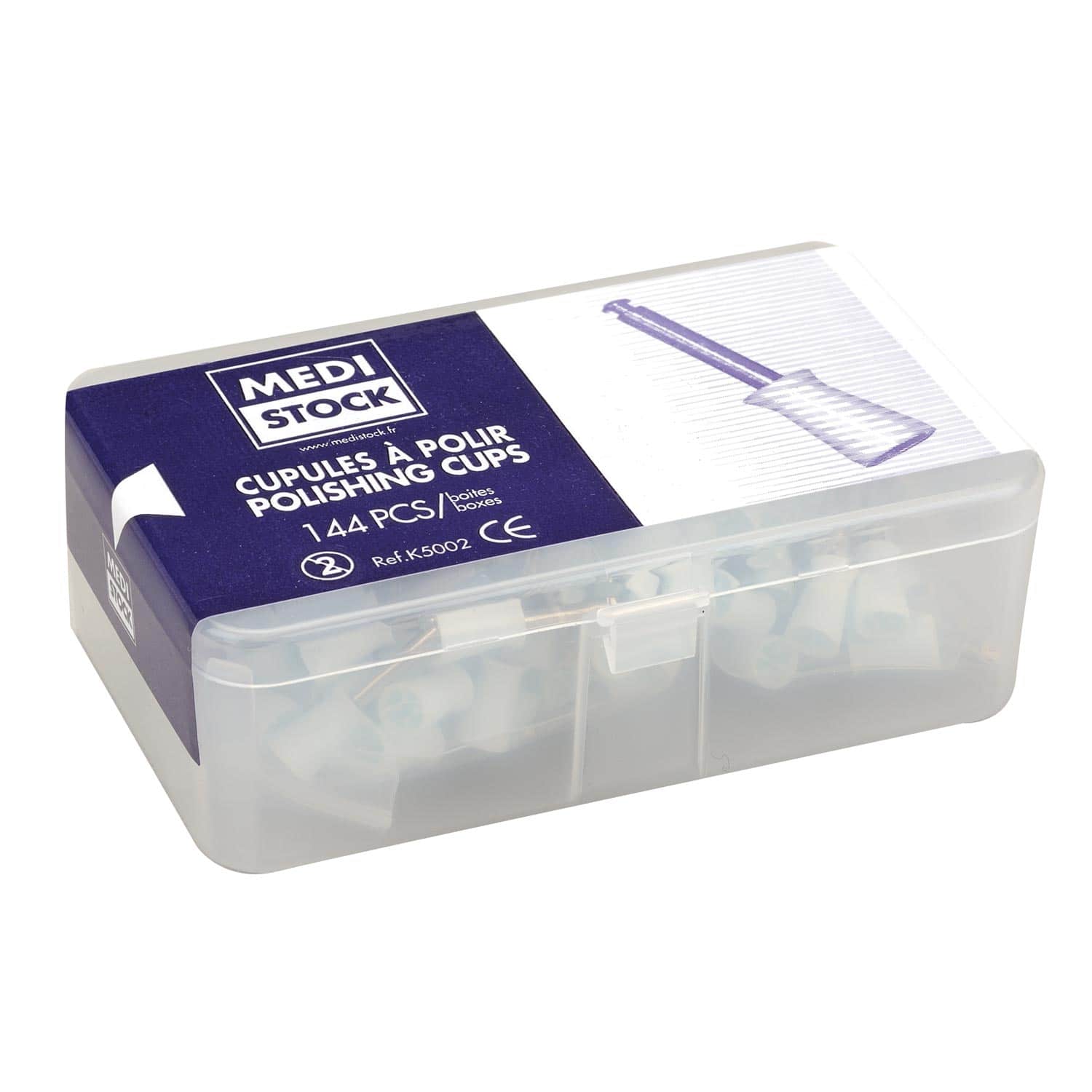 Profilaktyczne gumki polerskie marki Medistock nadają się do polerowania zębów oraz oczyszczania powierzchni zębowych – z pastą polerską lub bez. Kielichy do polerowania wykonane z gumy posiadają lamele i są montowane na kątnicę. Gumki do polerowania w formie kielicha dostępne są w zamykanym opakowaniu zawierającym 144 sztuki.