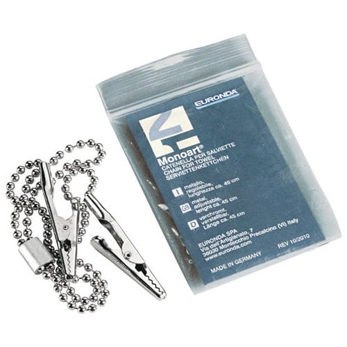 Chromowany łańcuszek do serwet do szybkiego zamocowania serwet dla pacjenta. Regulowany, łatwy w obsłudze.